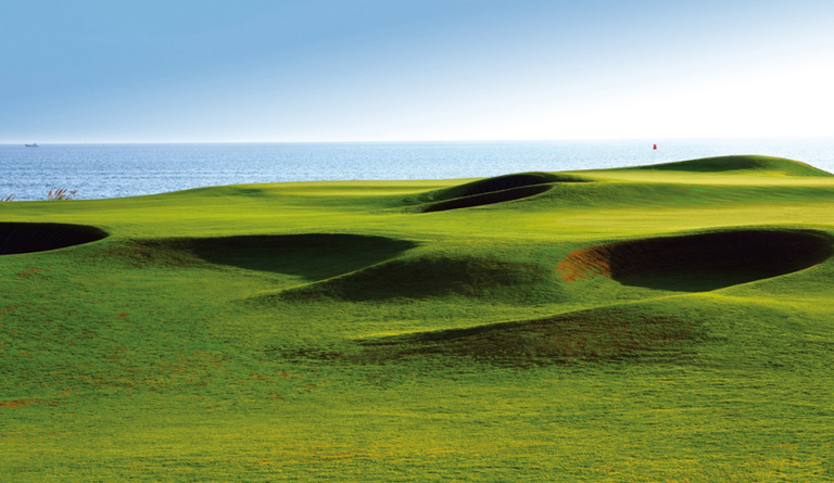 即将承办大赛的鉴湖•蓝湾球场,有大面积景观沙地,不仅赋予了球场荒漠高尔夫的独特景观,而且这种低维护草坪管理模式最大限度降低水肥使用量,由设计环节践行了低碳环保理念;剪草的草屑、修剪的树枝、掉落的花瓣树叶……一切有机植物悉数返回做肥料;挑选景观植栽品种时,耗费大量心血寻找三角梅这种耐贫瘠、耐干旱的植物。最关键的是球场3个结束洞被铺排在清水湾畔,在如天空般纯粹的蓝色波涛中延伸,使整场18洞挥杆在这里达到高潮,体验到高尔夫的最高愉悦。蓝湾球场,起伏的果岭、球道微地形和状似温柔端庄的沙坑是主宰成败的关键,她既是长打者的乐园,对短杆选手也是最有趣味性的球场。