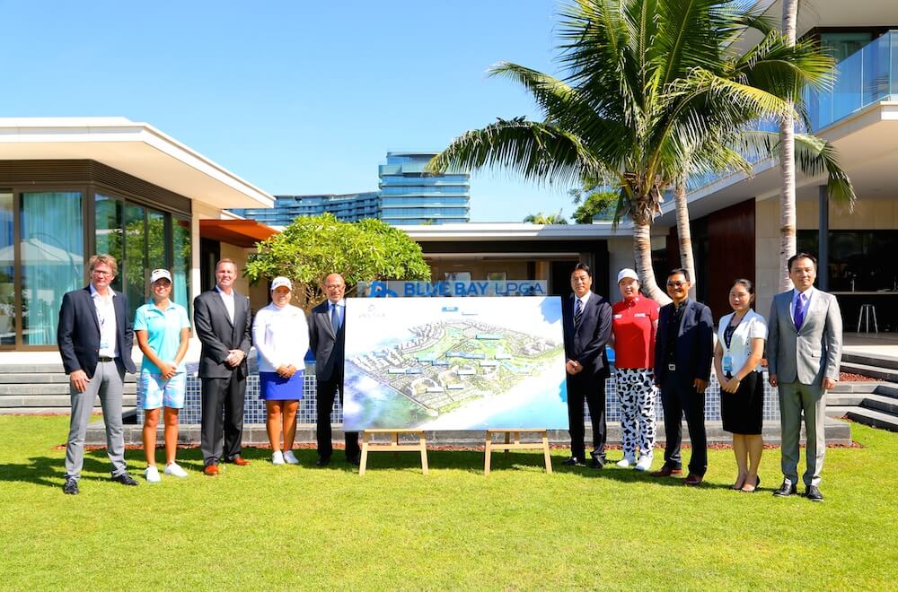 10月27日,备受瞩目的2015蓝湾大师赛-LPGA拉开序幕,81名国内外顶尖女子职业高球选手齐聚海南·绿城蓝湾小镇。世界第二朴仁妃(Inbee Park)、卫冕冠军李安-佩斯(Lee-Anne Pace)、中国内地首位大满贯冠军冯珊珊,与来自国家体育总局小球运动管理中心、海南省文化广电出版体育厅、陵水黎族自治县人民政府、美国女子职业高尔夫球巡回赛(LPGA)、中国女子职业高尔夫球巡回赛(CLPGA)、IMG高尔夫事业部的嘉宾和东道主——海南·绿城蓝湾小镇高德雪董事长共同见证了今年赛事的正式启动。