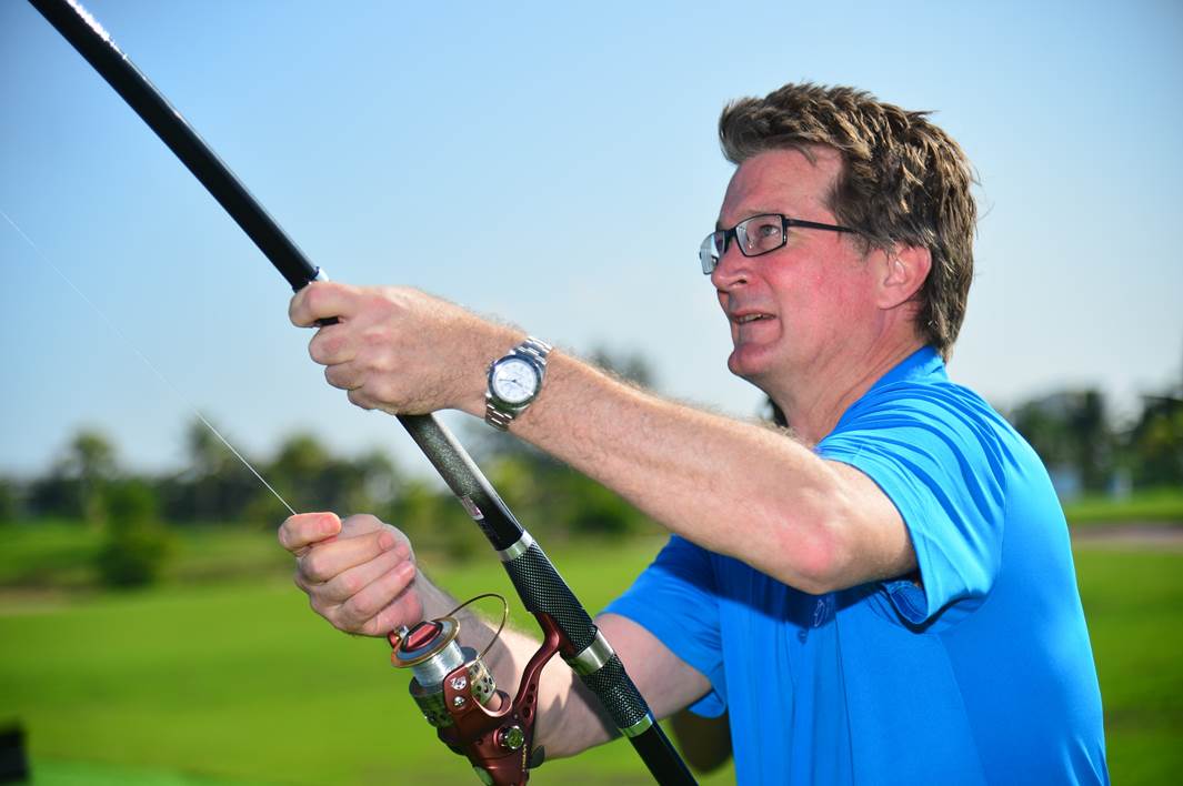 原来,绿城蓝湾小镇高德雪董事长去年就邀请了IMG的柯思乐先生来小镇钓鱼,今日赴约,酷爱钓鱼的柯先生可专注了。
