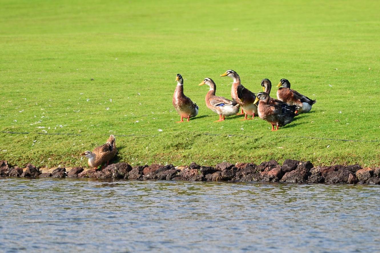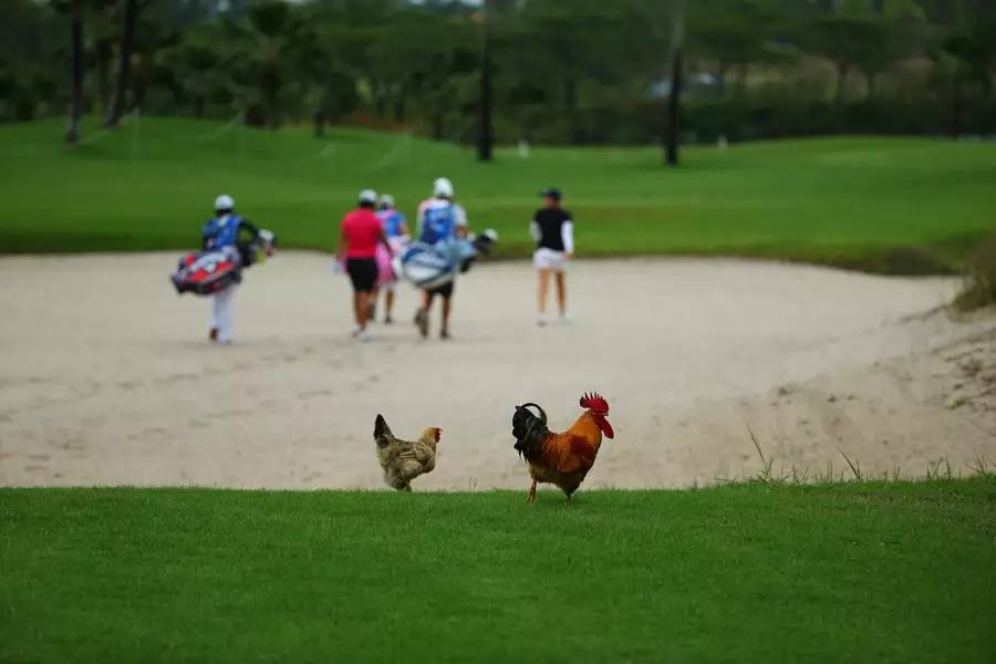 如果哪天你在球场上邂逅了散步、拱地皮的黑猪,或者是在球道上刨土找食的文昌鸡,可千万不要抱怨它们,因为它们也需要保持运动量,才能拥有健美身段。就好比美女高尔夫球员,多运动,身材棒棒哒!