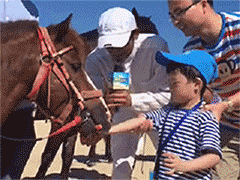小马儿很温顺的,和它亲密接触下!
