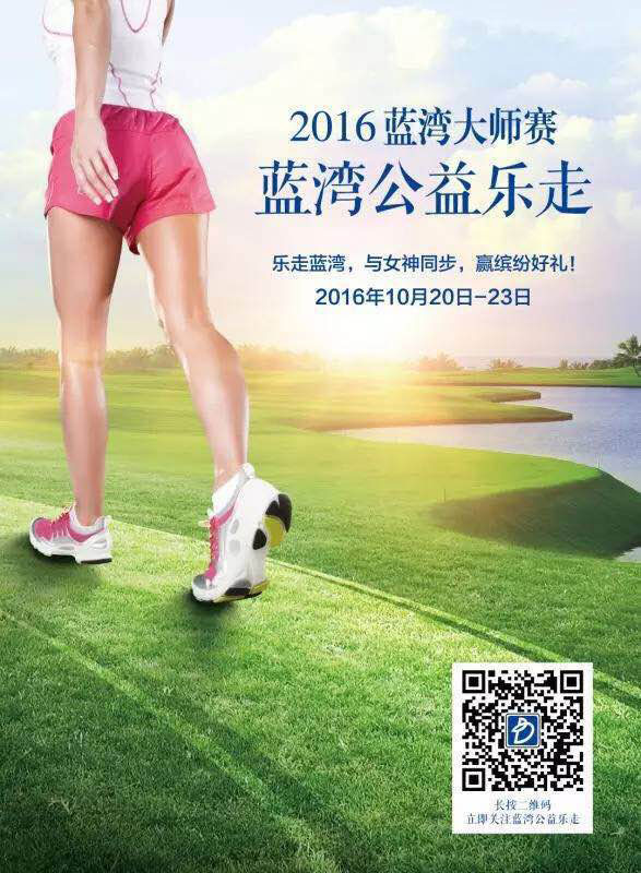 2016年10月,来自世界各地的81位顶尖高尔夫美女将在蓝湾大师赛上,奉上世界最高水准女子高球竞技。随着蓝湾大师赛的开幕,蓝湾公益乐走也将在10月20日-23日燃情开启,您不仅可轻松参与公益,还能与蓝湾女神同步、和小镇美景相伴!
