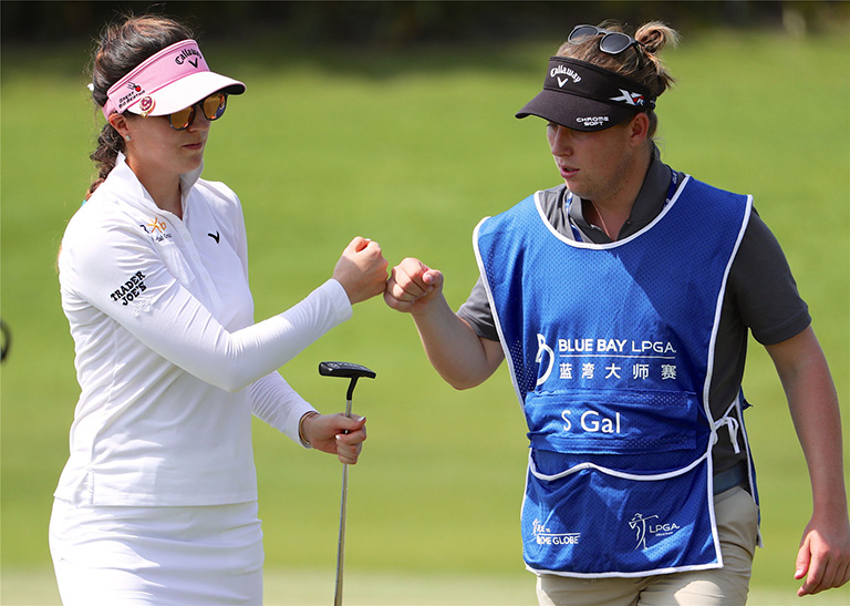 桑德拉•盖尔与球童击掌庆祝