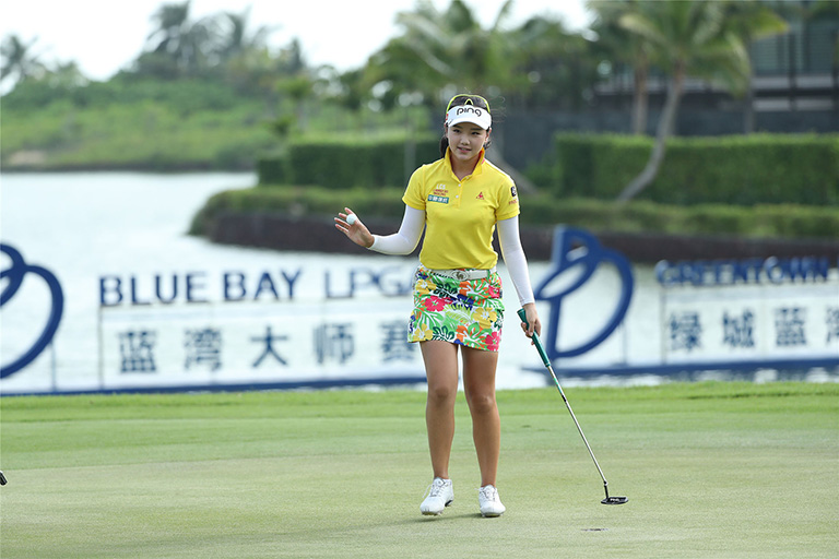 李旻智今年4月在乐天LPGA锦标赛上实现个人第二个LPGA胜利,目前位于LPGA奖金榜第16位。她今天在前九洞状态就很火爆,4只小鸟入账。虽然在12号洞吞下柏忌,但接着的14号洞,五杆洞,打出全天最精彩击球之一,将球送到洞边,“死鸟”!
