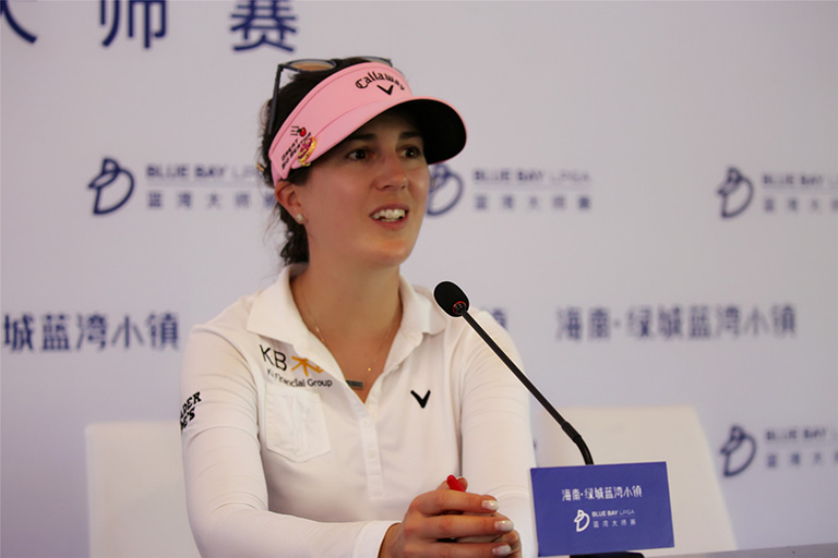最后三洞,3只小鸟的战绩让她不仅追赶上一度领先的桑德拉•盖尔(Sandra Gal),更拉开2杆差距。