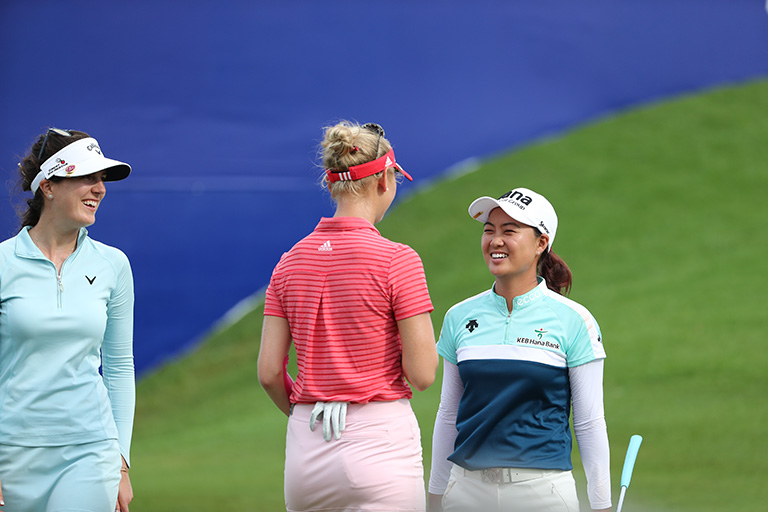 上周赢得韩亚银行锦标赛的西班牙球员卡洛塔•希甘达(Carlota Ciganda),今天打出71杆,以139杆,低于标准杆5杆的成绩与“美国甜心”杰西卡•科达(Jessica Korda)(67-72)并列位于第三位。