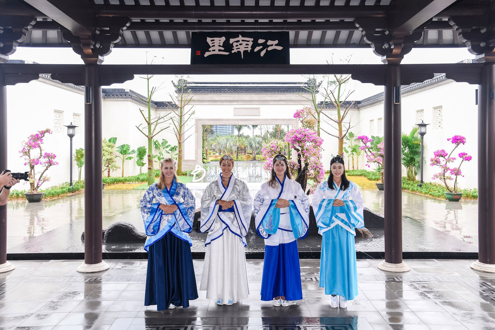 开幕仪式后,四位身着汉服的女子高尔夫球员徐徐步入以宋代建筑为蓝本的江南里会所。魏圣美(Michelle Wie)、杰西卡-科达(Jessica Korda)、桑德拉-盖尔(Sandra Gal)和隋响(Xiang Sui)在众多嘉宾与记者面前,表演了中国传统四艺——琴棋书画。蓝湾女神汉服范、悠悠中华古情韵,为这场国际顶级赛事增添一抹浓浓中国风。
