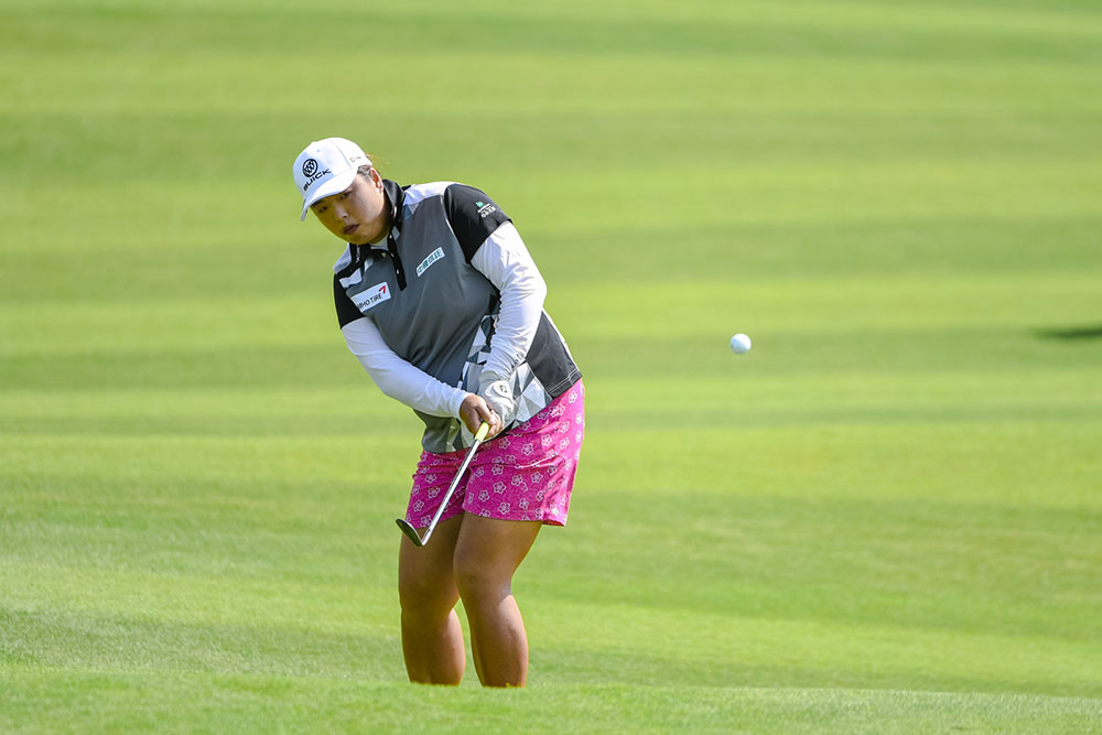 北京时间11月10日,大风之中,鉴湖·蓝湾高尔夫球场向球员们提出了巨大考验。冯珊珊(Shanshan Feng)在前九洞表现稳定,第1洞和第8洞都抓到死鸟,平标准杆成绩来到后九洞。第14洞,她在果岭前方再次展示世界级切杆,一切一推拿下小鸟,成绩来到低于标准杆9杆,一度看上去会抛开其他球员。