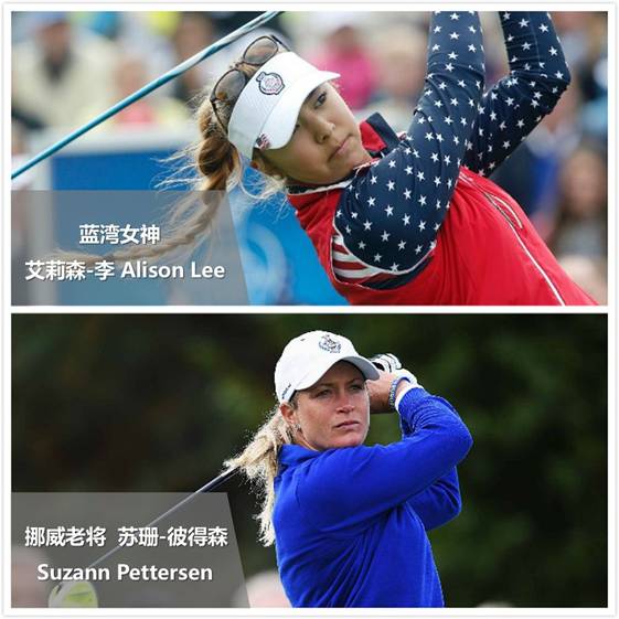 蓝湾女神之一、当时还是美国队新人的艾莉森-李(Alison Lee)与欧洲队老将苏珊-彼德森(Suzann Pettersen)在四人四球补赛中前16洞平手。