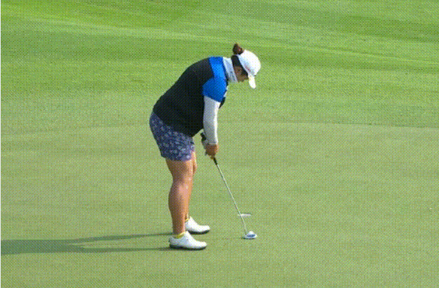 『国宝珊』及时调整状态、重振旗鼓,在第11和第13洞成功抓鸟,并重夺领先。但莫莉娅也没有停下追赶的脚步,第14洞过后,二人的差距再次缩回到一杆。