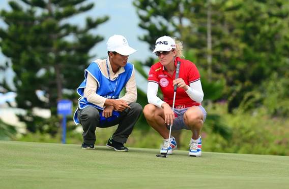 另一位同样在前四届蓝湾大师赛上为职业球员背包的球童——王丰,他先后服务了朱莉亚·瑟加斯(Giulia Sergas)、何沐妮和林迪·邓肯(Lindy Duncan)。咦?四届比赛为何只有3位球员?原来,邓肯在2017年参赛时再次启用了王丰担任球童。