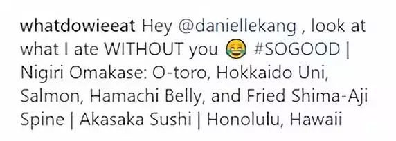 美食当前还能想到好姐妹丹妮尔-姜(Danielle Kang),开玩笑说看看我不带你玩的时候吃的是什么。