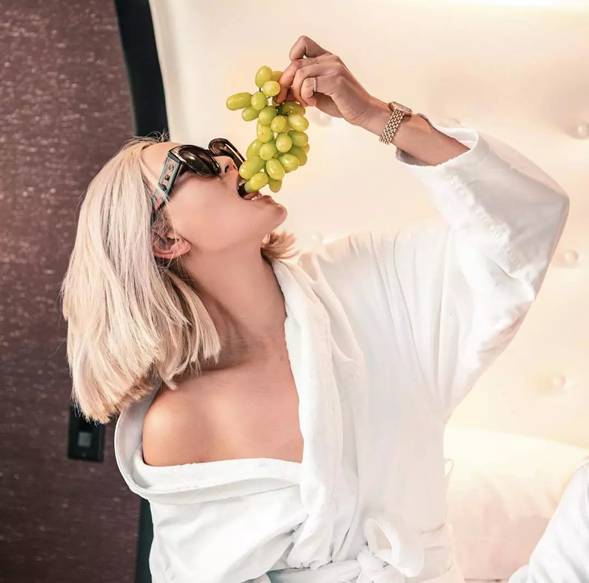 女神吃串葡萄都可以吃出美丽又性感的模样,并可爱配文道"I'm sex and I know it."