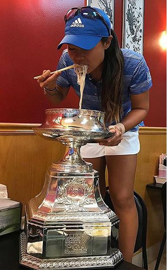 ▲ 大满贯夺冠,她捧着奖杯吃韩国特色辛拉面