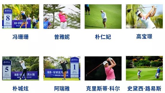 自从2006年2月,第一期女子世界高尔夫排名发布以来,共9个国家(或地区)13位球员登上过世界第一位,其中8人来过绿城蓝湾小镇——冯珊珊(中国)、曾雅妮(中国台北)、朴仁妃(Inbee Park,韩国)、高宝璟(Lydia Ko,新西兰)、朴城炫(Sung Hyun Park,韩国)、阿瑞雅(Ariya Jutanugarn,泰国)、克里斯蒂·科尔(Cristie Kerr,美国)以及史黛西·路易斯(Stacy Lewis,美国)。她们的精湛球技和名将风采熠熠生辉,给球迷留下许多难忘记忆。